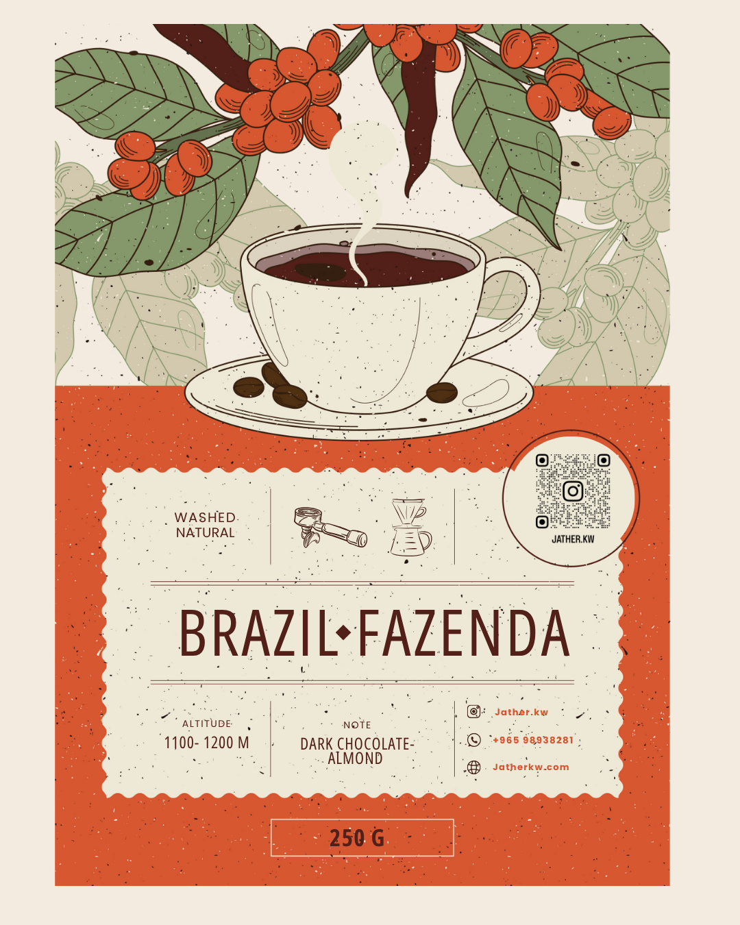 قهوة فازيندا البرازيلية مجففة من إنتاج مزارع البرازيل يمكنك الحصول من خلالها على مذاق الشكولاتة الداكنة ولمسة من المكسرات الخفيفة مما يجعلها إختيار مثالي لعمل الاسبريسو مع إضافات الحليب، حيث تتم معالجتها بشكل طبيعي للحصول على حبيبات القهوة المخففة، مناسبة لمشروبات الحليب وكذلك المقطرة والكيمكس .