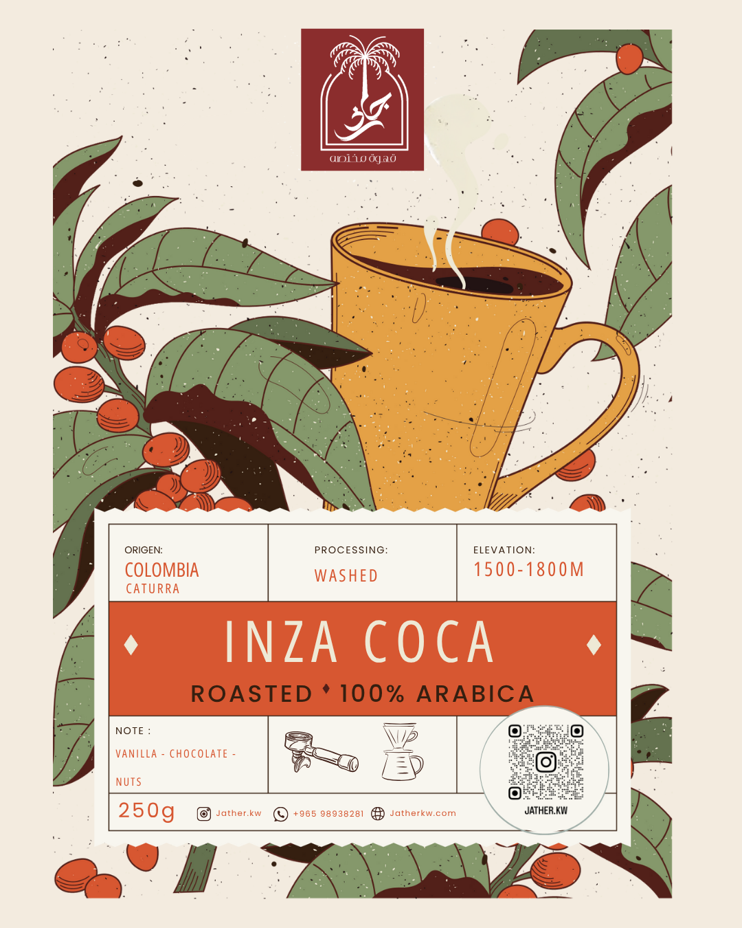 تتميز قهوة كاوكا كولومبيا المغسولة بإيحاءات غنية ومميزة تعكس جودة منطقة وإقليم كاوكا الذي تنمو حبيبات البن على أرضه الخضراء، حيث تتمتع هذه القهوة الرائعة بإيحاءات كلاسيكية من حلاوة السويت مع حموضة متوازنة تحدث تناغم مثالي بين النكهات، مما يجعلها تجربة تذوق فريدة وممتعة لعشاق القهوة الكلاسيكية متوازنة النكهات والحمضية، لتضفي لمسة مميزة من الانتعاش والحيوية مع كل رشفة.